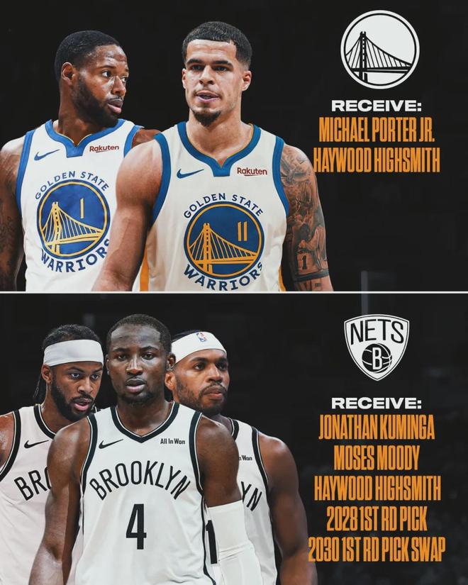 露天看臺(BR)模擬一筆交易方案:勇士送出庫明加、穆迪、希爾德、2028年首輪簽、2030年首輪互換權,5換2得到小波特和海史密斯。現在的問題是,籃網對庫明加不感興趣,所以勇士需要拉來第三支甚至第四支球隊參與交易。