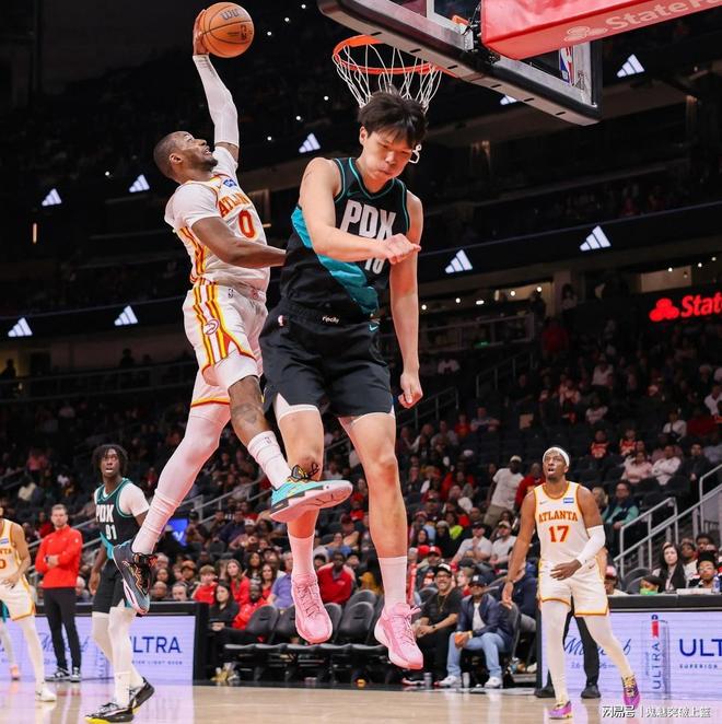 本場比賽,庫明加跟老鷹可以說是徹底吊打開拓者!庫明加除了高效送出20+7+3+2全面數據外,他還在比賽中貢獻了兩記技驚四座的暴扣,一次是大風車暴扣、一次是炸裂隔扣楊瀚森。