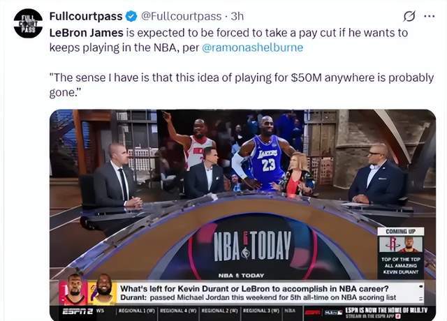 根據拉莫娜·謝爾伯恩報道,詹姆斯未來很可能會選擇降薪,放棄5000萬年薪,只為球隊能夠安全續約里夫斯,補強角色陣容。