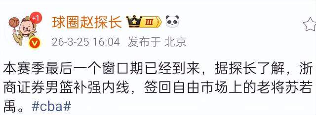 根據媒體人報道,CBA名將蘇若禹確定會在這個窗口期加盟浙江廣廈,他重返老東家效力,對于浙江廣廈來說,這是一次非常好的補充,特別是5號位,以蘇若禹的能力來說,還是會比吳驍要好一些,這也是一個信號,浙江廣廈本賽季的目標就是全力衛冕總冠軍。