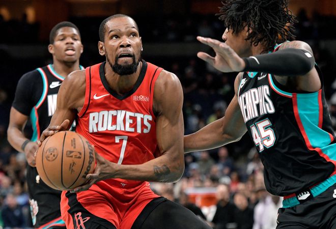 末節開場火箭再度拉開到8分,但火箭又跟上一場打森林狼一樣防守斷電+連續失誤,灰熊再度縮小到2分,依靠杜蘭特的三分球,申京的傳球火箭穩住了局勢。申京單打造犯規兩罰全中,灰熊失誤后小賈暴扣,進入最后2分鐘火箭還領先9分,