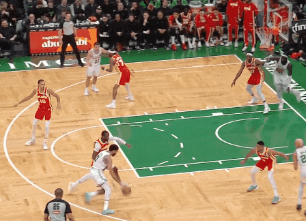 今天第四節凱爾特人最好的一球:沙伊曼和普里查德二人轉突破,回傳弧頂,塔圖姆點給加扎突破上籃。四人摸球(懷特在底角牽制),兩次突破打穿。今天全隊四個人助攻4次以上,人人經手摸球。