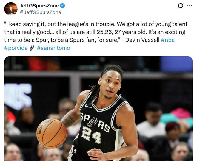 正如賽后瓦塞爾所說,聯盟其他球隊要頭疼了,馬刺隊這套核心平均年齡只有25歲左右,因此無論是對于馬刺,還是馬刺球迷來說,現在都正處在一段令人憧憬的黃金時代之中。