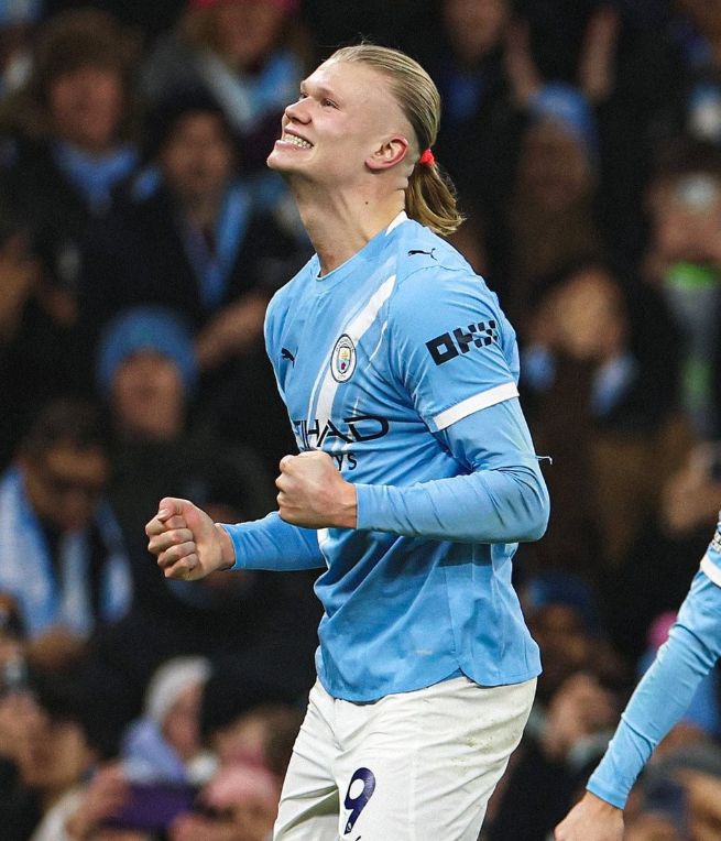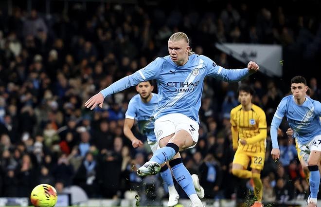 在頂住對手一段時間后,曼城才逐漸找到自己的節奏;第21分鐘,多庫小角度似傳似射,皮球滑門而過;第25分鐘,阿克傳中,哈蘭德搶點打門偏出;第41分鐘,多庫突破到禁區內被迭戈-戈麥斯直接撂倒在地,主裁判觀看VAR后吹罰點球,哈蘭德操刀主罰命中,1:0!哈蘭德打破了近3場0球0助攻,英超進球數已經超越了德羅巴;同時哈蘭德曼城生涯各項賽事173場比賽已打入150球,其中包括本賽季26球。