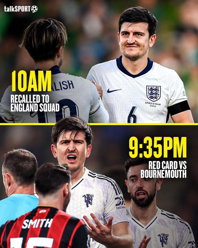 曼聯后衛哈里-馬奎爾度過極具戲劇性的一天,英國時間上午10點,他正式收到英格蘭隊征召,時隔18個月重返三獅軍團;晚間21點35分,在曼聯客場對陣伯恩茅斯的英超比賽中,他于禁區內放倒埃瓦尼爾松,吃到紅點套餐,最終曼聯2-2戰平對手,錯失三分。