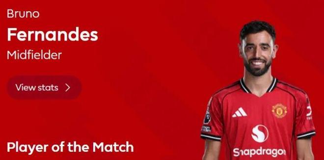 在爭議判罰的陰影下,B費的個人表現(xiàn)依然耀眼。本場比賽他點射建功,并造成對手烏龍,賽后當選英超官方評選的全場最佳球員。