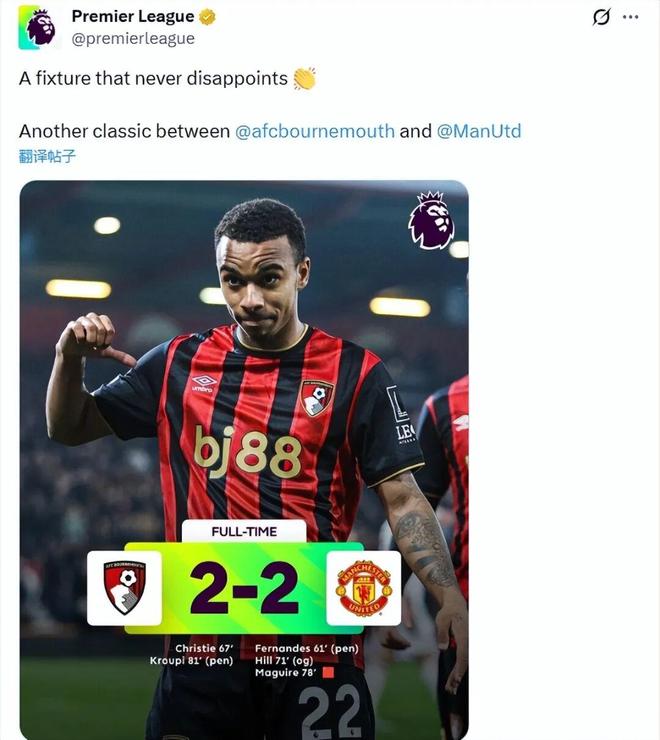 英超第31輪,曼聯(lián)客場2-2戰(zhàn)平伯恩茅斯。一場本該拿下的比賽,因為兩次關鍵判罰的,成了一輪關于“公正”的激烈爭論。賽后,曼聯(lián)主帥卡里克直言判罰“荒唐”,而球迷則在英超官方社媒下掀起抗議浪潮。不過,官方卻給出了其他的回答。